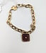 Schakelarmband van roestvrij staal, verguld door ionisatie, met een bordeaux hanger. Lees meer..