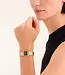 De wijzerplaat is uitgevoerd in mat zwart en wordt geaccentueerd door sprankelende kristallen rondom (of als indexen), wat een vleugje elegantie en glamour toevoegt. Lees meer..