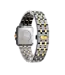 Deze bicolor uitvoering wordt versterkt door een helderwitte wijzerplaat en een kast die subtiel is afgewerkt met schitterende zirkonia. De band is opgebouwd uit afwisselend gematteerde en gepolijste schakels, waardoor dit model een speelse maar tegelijk verfijnde uitstraling heeft.