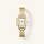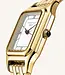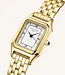 Het horloge onderscheidt zich door zijn unieke rechthoekige, achthoekige kast met compacte afmetingen (meestal 21 x 26 mm). De echte blikvanger is de wijzerplaat, die wordt omlijst door een dubbel goudkleurig frame. Dit detail geeft het horloge een luxe, gelaagde en verfijnde uitstraling.