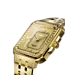 De band van goudkleurig roestvrij staal is fraai afgewerkt met matte en gepolijste schakels. Waterbestendig tot 5 ATM en voorzien van saffierglas is dit horloge zowel elegant als duurzaam.