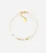 Deze dubbelrijige enkelketting van verguld staal is elegant versierd met ringen van natuursteen en goudkleurig staal. Lees meer..