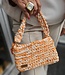 Dit handgemaakte gevlochten tasje in oranje is een vrolijke blikvanger die je outfit direct een zomerse touch geeft.