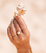 De ring zelf is voorzien van een reliëf en bovenop heeft de ring een grote, witkleurige parel. De goudkleurige Fame Perla is verkrijgbaar in de maten 16 (EU 50), 17 (EU 53), 18 (EU 57) en 19 (EU 60). Deze single ring brengt je meteen in zomerse sferen en maakt jouw outfit in een handomdraai compleet. Om welke vinger laat jij deze statement ring shinen? iXXXi Fame ring Perla is ook verkrijgbaar in de platingkleur zilver.