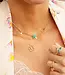 Halsketting van staal of verguld staal, bezet met kleine, lieflijke stalen hartjes. Lees meer..