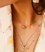 Halsketting van verguld staal met een hanger van kleine, tot een bal of bloem gevormde, gestikte kraaltjes. Lees meer..