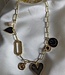 Een schakel ketting met bedels in zwarte accenten. Lees meer..