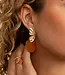 Draag de oorbellen solo voor minimalistische elegantie. Bouw gelaagdheid met fijne studs of kleine hoops om textuur toe te voegen zonder volume. De warme nuance harmonieert met goud en zilver en brengt zachtheid in neutrale outfits. Bij denim ontstaat een speelse balans, bij zwart een chic contrast dat nooit schreeuwerig wordt. Het lichte draaggevoel blijft comfortabel van ochtend tot avond. Laat de tint subtiel terugkeren in een delicate hanger of ring voor een samenhangende set. Een tijdloze keuze die seizoen na seizoen een stralende, vrouwelijke noot dicht bij je gezicht toevoegt.