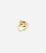 Deze ring, verkrijgbaar in staal of fijn verguld staal, kruist aan de voorkant dankzij twee afgeronde vormen die sierlijk in elkaar verstrengeld zijn.