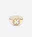 De vergulde ring heeft een gedetailleerd klavertje vier, ingelegd met parelmoer. Lees meer..